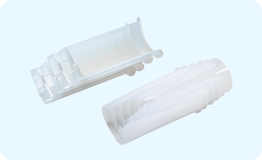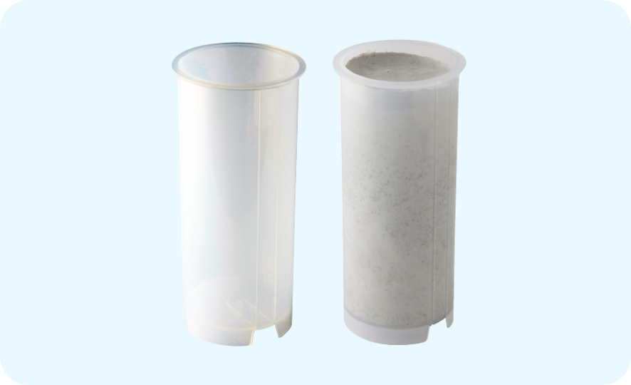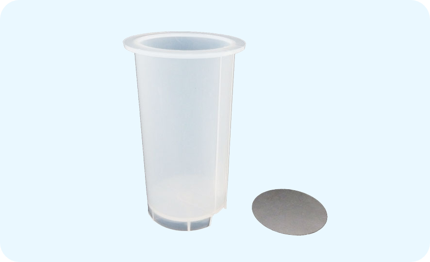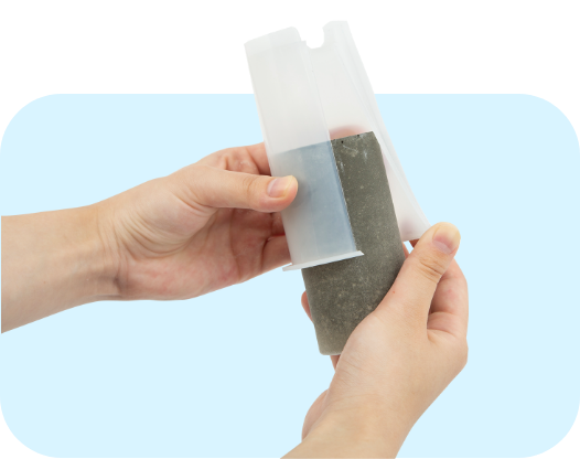 供試体をより手軽に成型するために作成した、半透明の型枠です。