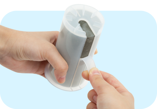 底面にツマミがあり、ペンチで剥がせば、誰でも簡単に20秒で脱型できます。